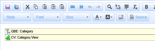And then below it, embed the Query Q: Category View with the Output set to CV: Category View.