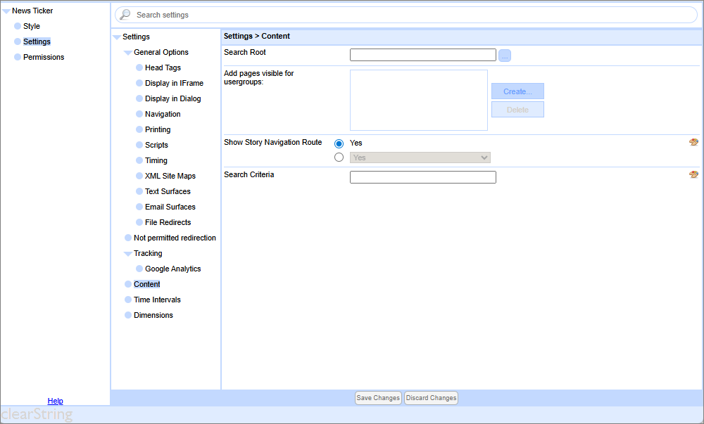 The News Ticker component provides a 'teletype' ticker for display elsewhere on the site.