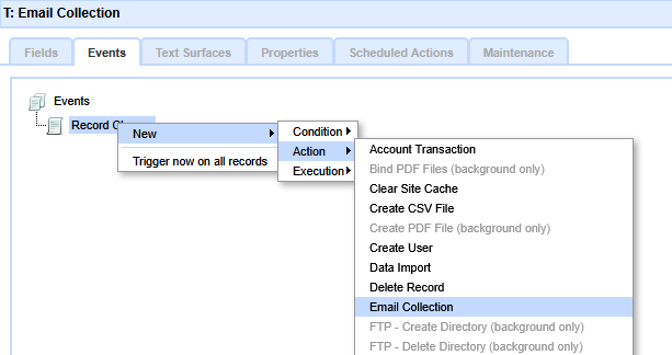 Create a new Email Collection Action