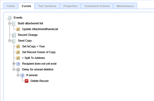 A typical Event tree showing Events, Conditions and Actions